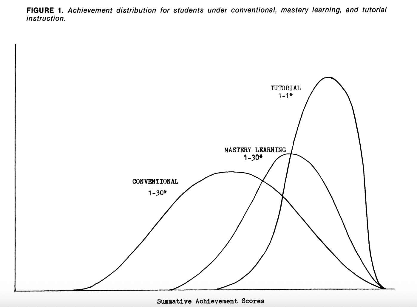 Árið 1984 birti Benjamin Bloom rannsókn (Bloom, 1984) sem sýndi fram á að ef meðalnemandi í bekk fengi einstaklingskennslu í stað bekkjarkennslu, þá myndi hann verða betri en 98% nemenda í bekknum. Þessi rannsókn fékk nafnið „The 2 Sigma Problem” eða vandamálið með tvö staðalfrávik.
